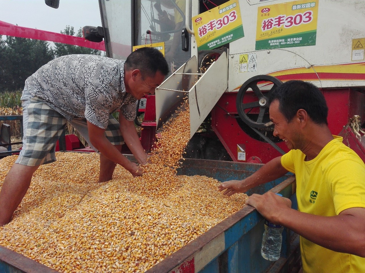 10、適時收獲:玉米籽粒達到生理成熟時及時收獲。玉米達到生理成熟的標(biāo)志是籽粒乳線消失,籽粒尖端出現(xiàn)黑色層,此時收獲可奪高產(chǎn)。